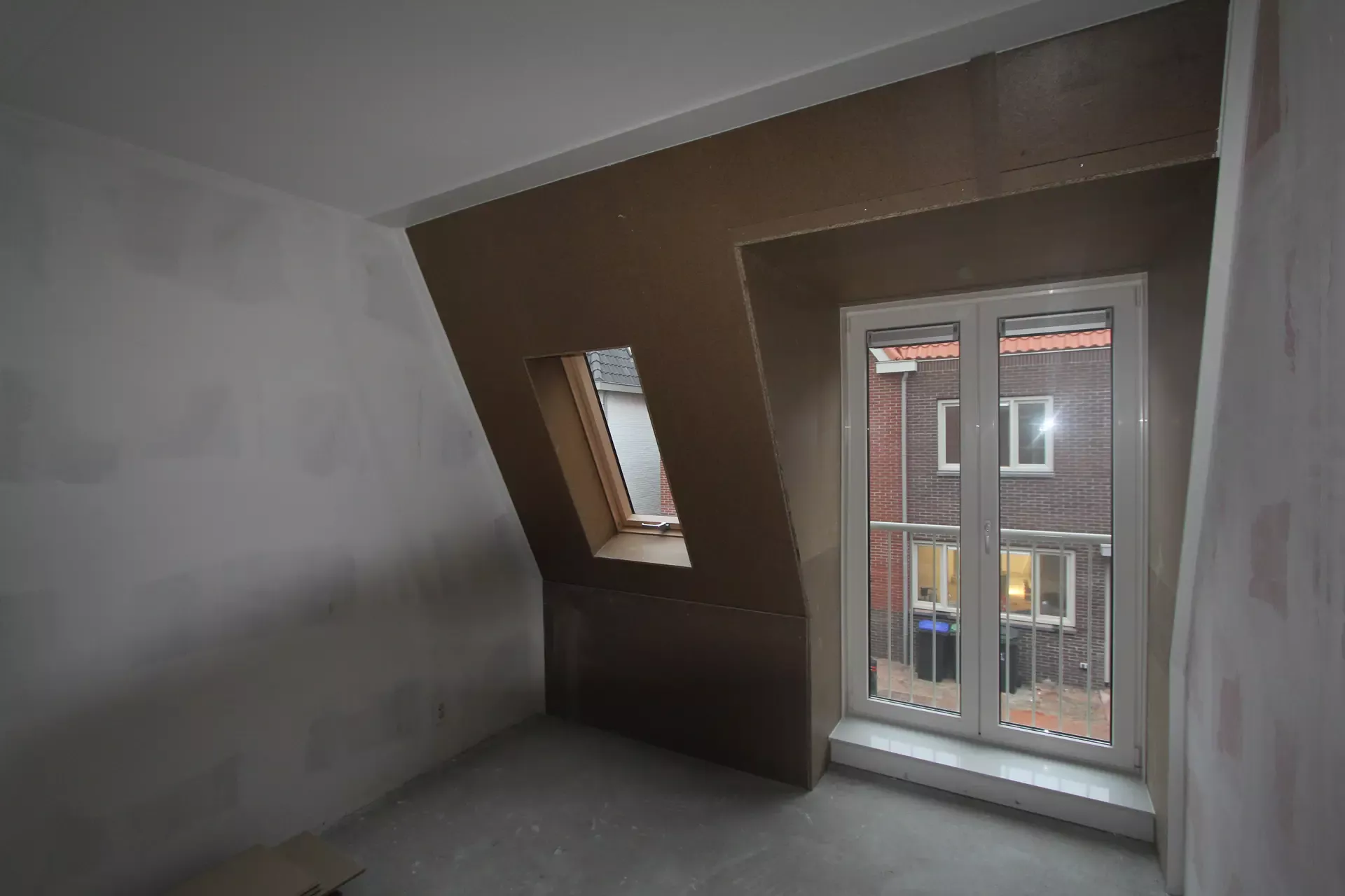 Deze week zijn we gestart met de afwerking van een van woningen van het nieuwbouwproject Angstelhof in Baambrugge. Hier gaan we de bruine houten aftimmering van het dakbeschot verwijderen en vervangen voor gipsplaten. Stukadoren en spuiten van alle wanden en plafonds van de gehele woning. Trappen en houtwerk worden ook gespoten.