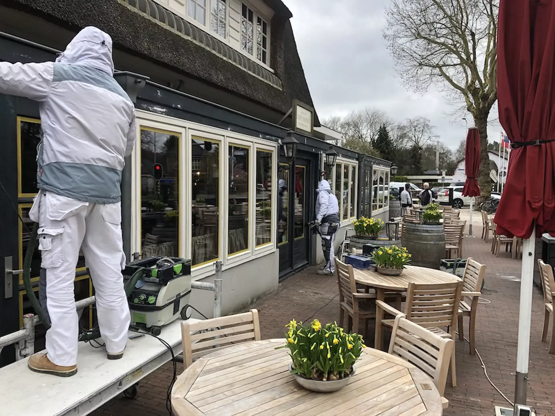 In de Hollandse Rading zijn we gestart met het schilderen van de buitenzijde van Cafe-Moeke. Een flinke klus dus je zal onze aanhanger hier wel een tijdje zien staan.