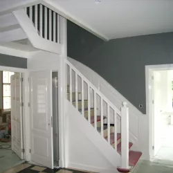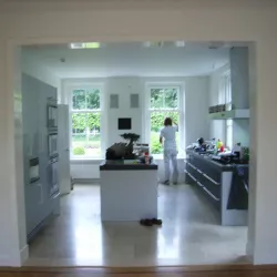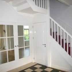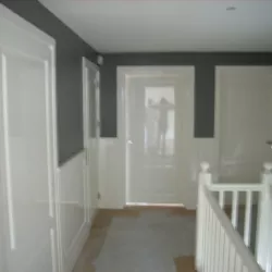 Deze prachtige villa hebben wij met oog voor detail van binnen volledig voorzien van hoogglans spuitwerk van de allerhoogste kwaliteit. De buitenzijde hebben we zorgvuldig met de hand geschilderd, waarbij elke kwaststreek bijdraagt aan de verfijnde uitstraling. Daarnaast zijn de vloeren door onze gespecialiseerde vakmensen professioneel afgewerkt met een stijlvolle whitewash, wat de villa een moderne en frisse uitstraling geeft.